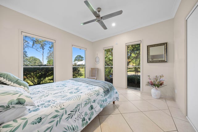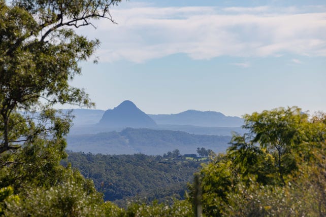 Elevated, private and exceptionally well-appointed, this immaculately presented contemporary residence on 5 acres offers spacious living and comfortable all-weather entertaining, spectacular panoramas of the Glasshouse Mountains and Moreton Bay, an enormous shed, multi-vehicle parking and a self-contained granny flat.