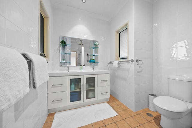 The four spacious bedrooms have built-in wardrobes, with the deluxe master suite having a walk-through robe and an ensuite with floor-to-ceiling tiles, a heated towel rail, a separate toilet and a twin-basin vanity. An office or media zone is a functional addition.