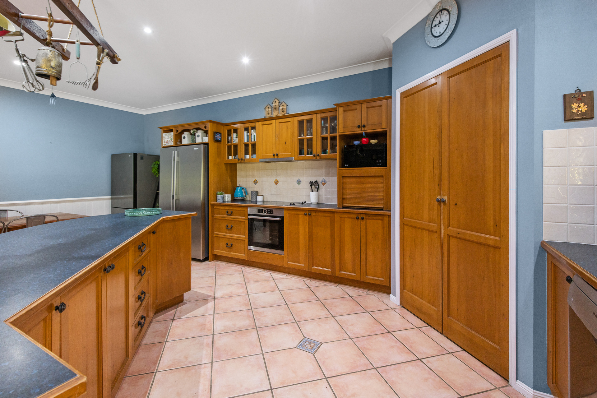 Entertain in style in the spacious living area, where gatherings are made unforgettable against the backdrop of the combustion fireplace. The country-style kitchen, featuring an island bench and a servery window - opening onto a large deck, provides the perfect setting for culinary adventures and relaxed dining experiences. High ceilings throughout the home create an open and airy ambiance, enhancing the sense of space and luxury.
