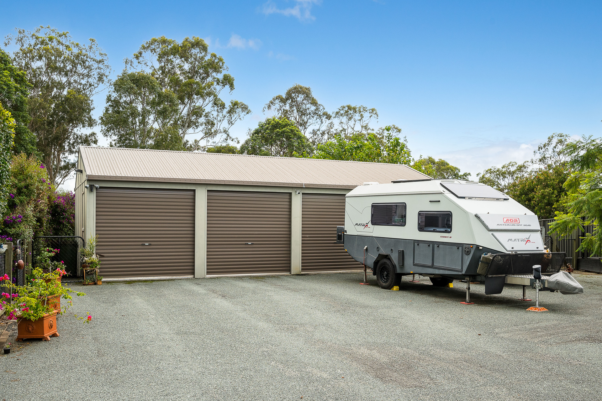 The outdoor oasis also features a rolling level lawn, paved dining patio, chook pen and a choice of established fruit trees, alongside conveniences like a powered four-bay shed, workshop and a lower-level retreat/5th bedroom with a private deck.