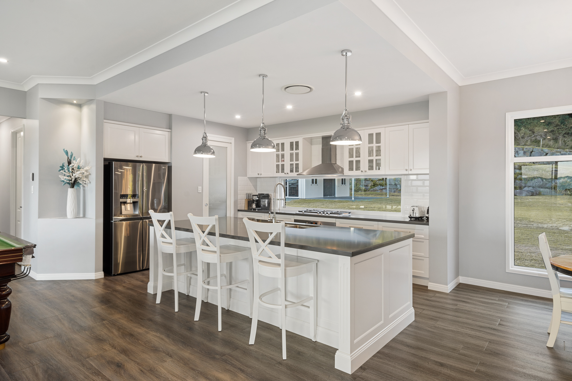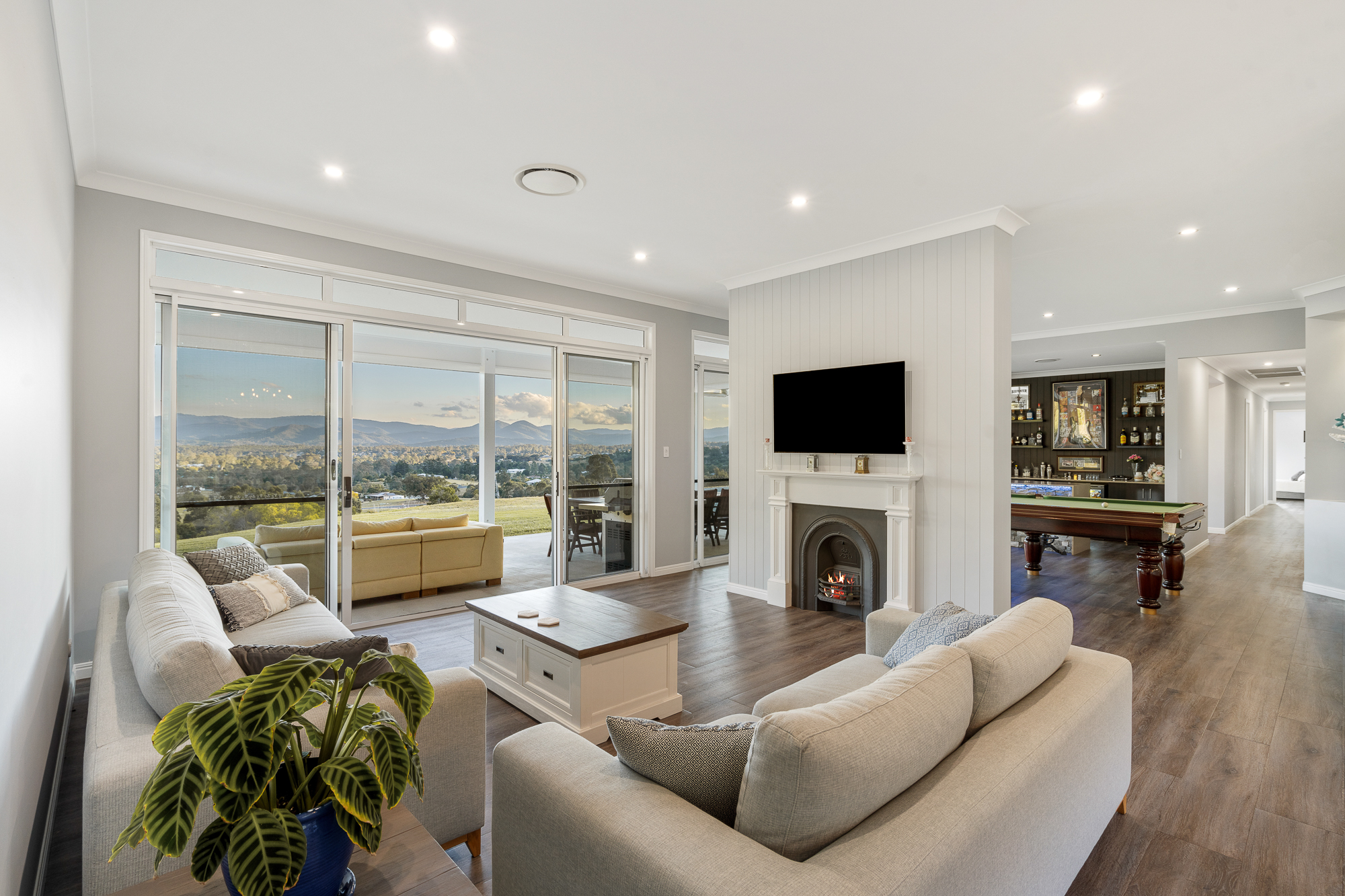 4 Vinery Place in more detail: Built December 2017, custom designed to capture the views from almost every room - The builder was Araman homes 380m2 house with 10 foot ceilings in main open plan living area as well as outdoor area and 9 foot through out the rest of the house 2 pac kitchen, butlers pantry and bathroom cabinets all with stone bench tops throughout the house 40mm thick in kitchen Full built in bar with stone bench tops including waterfall edge Faux fireplace to give desired style and look Airconditioning: Daikin Ducted Air Conditioner - 7 zones Solar System: 10kw Monocrystalline. The status of the solar can be checked through the solar edge app 2 x water tanks on house and 1 x next to shed (can be used for gardens). Therefore, total of 3 x 23,000 litres tanks Internet Connection - NBN Fibre to the Node Sewage Sceptic: Taylex Advanced Blower System (ABS)