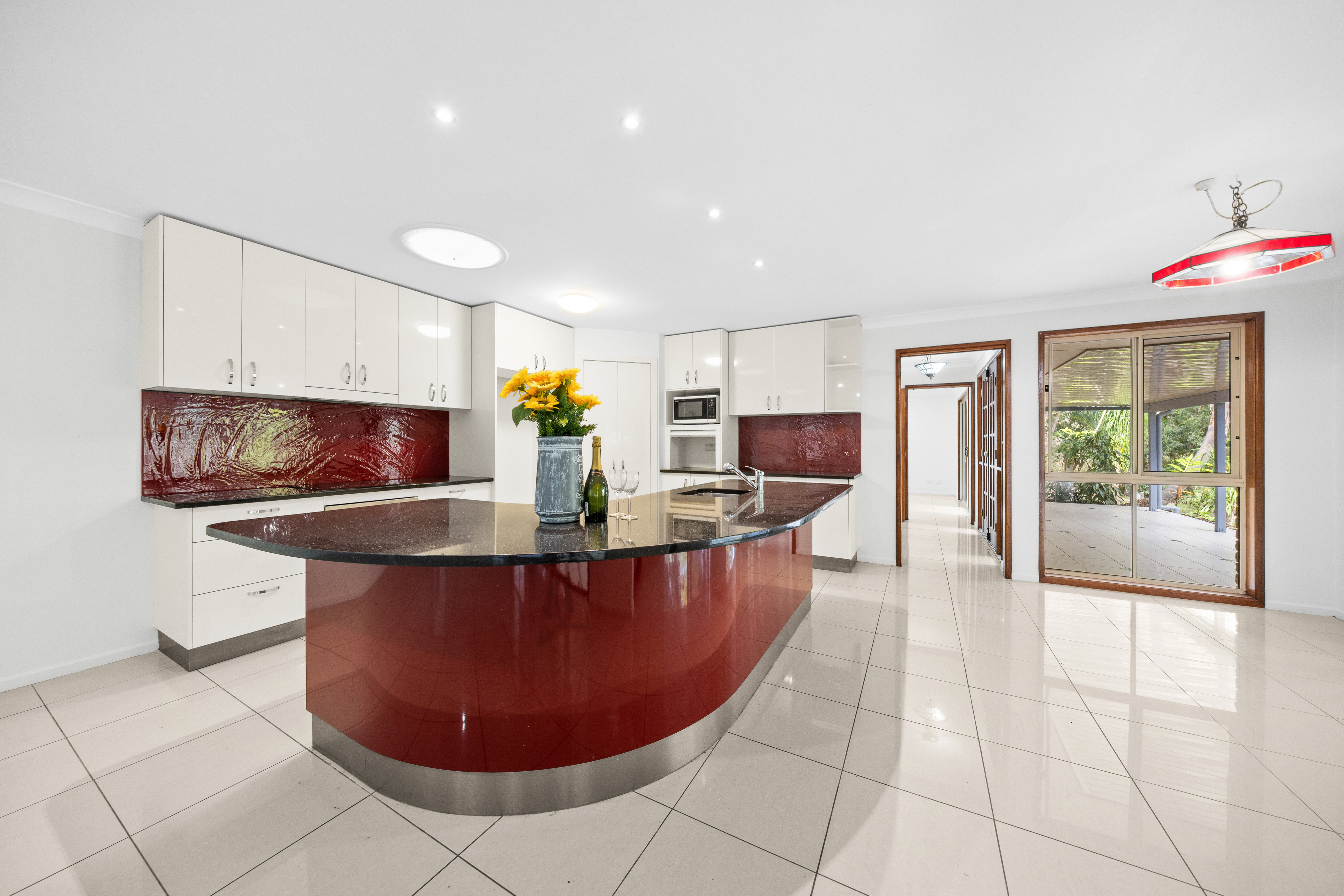 With stone benchtops, a long, curved breakfast bar, modern stainless-steel appliances, a coffee machine area, loads of storage and a walk-in pantry, the well-performing kitchen is set to please.